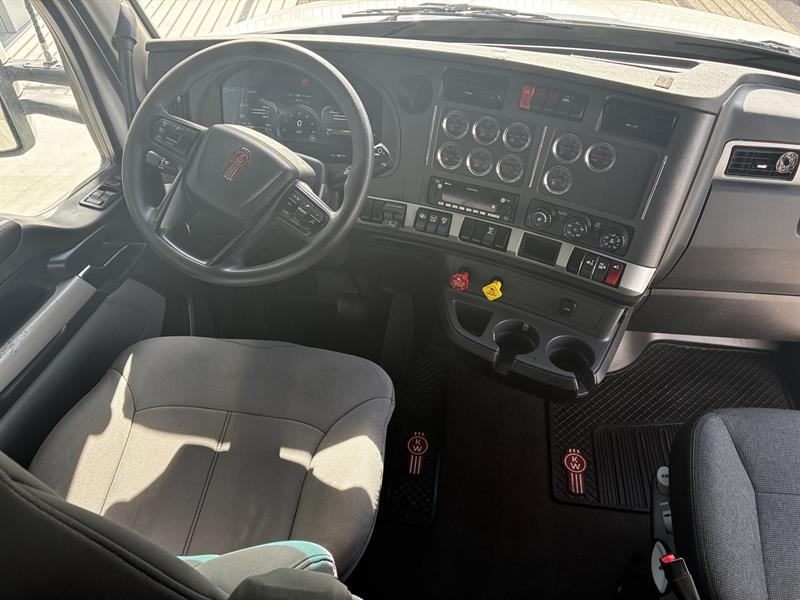 Kenworth T680 2022 blanco con dormitorio de techo elevado, motor Cummins X15 con 500 caballos de fuerza.