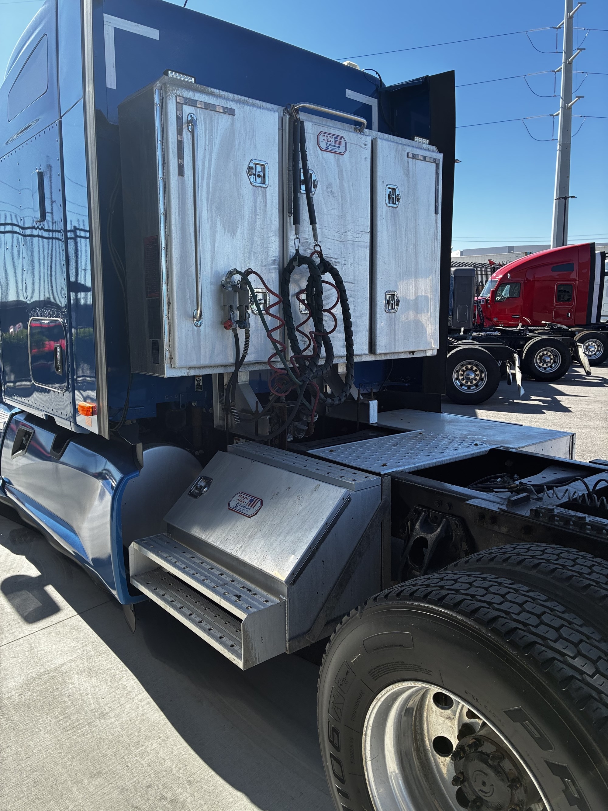 Kenworth T680 2021 con cabina dormitorio Midroof, motor Cummins X15. Color azul.