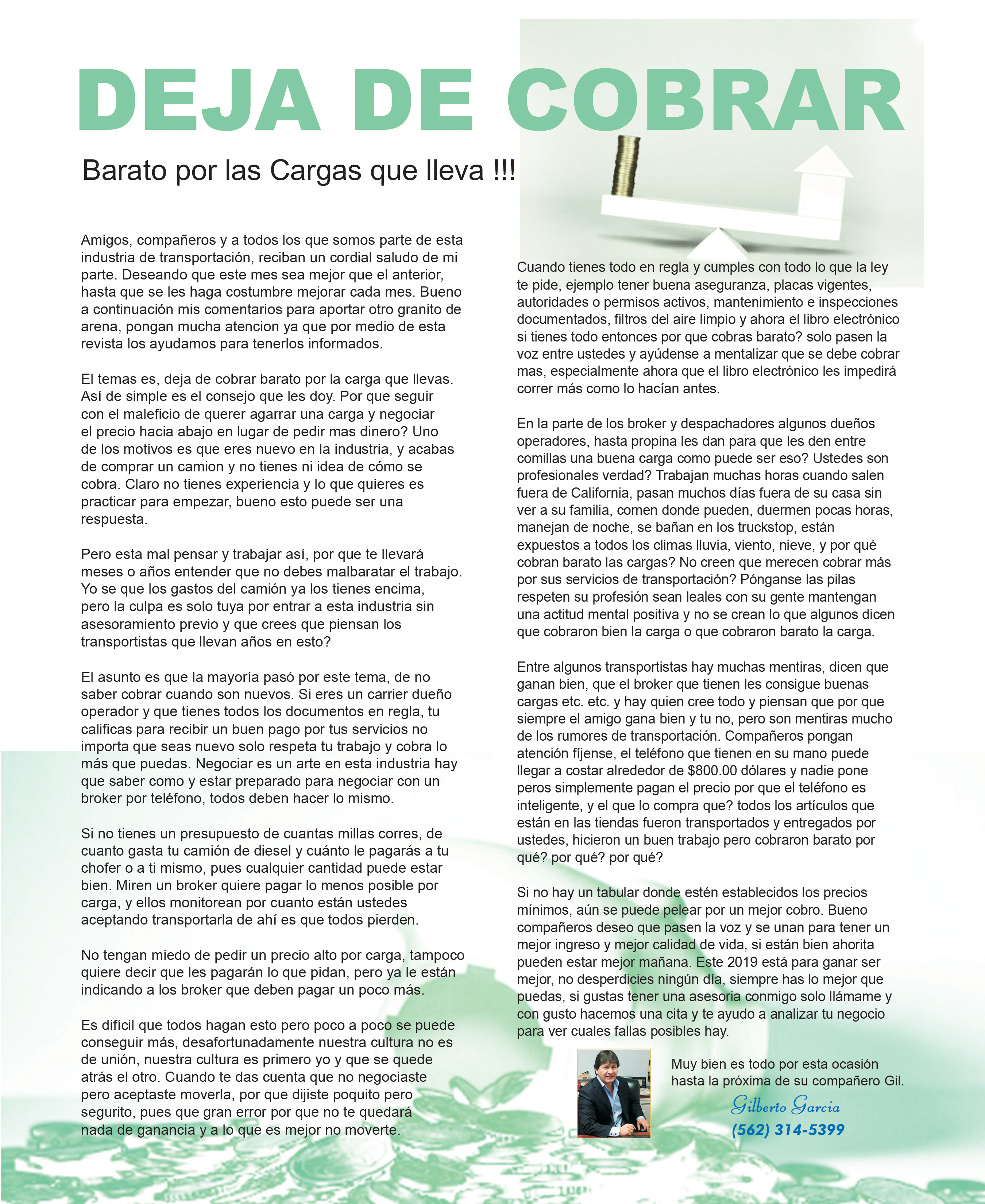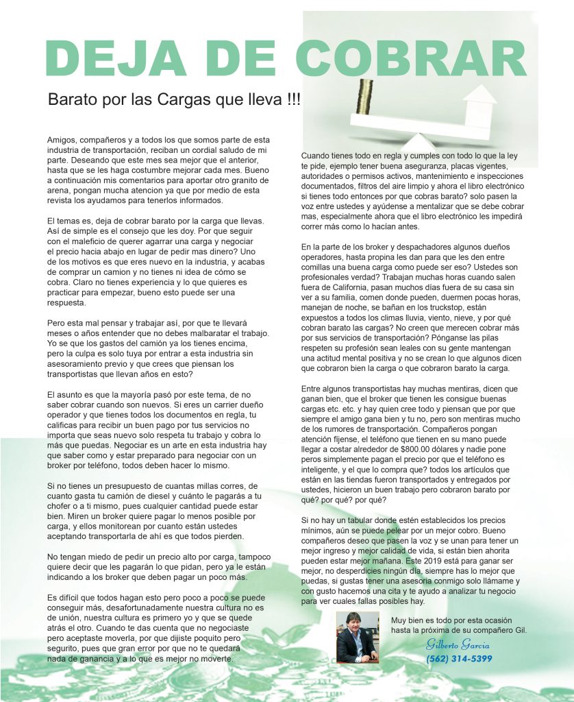 Deje de cobrar barato por las cargas que lleva